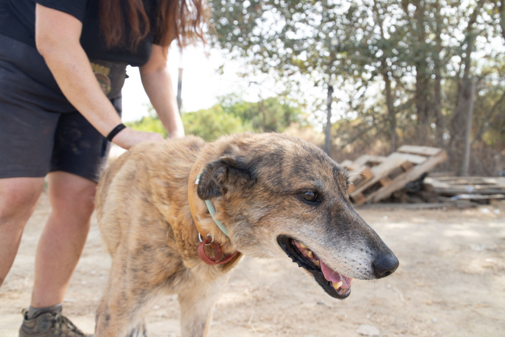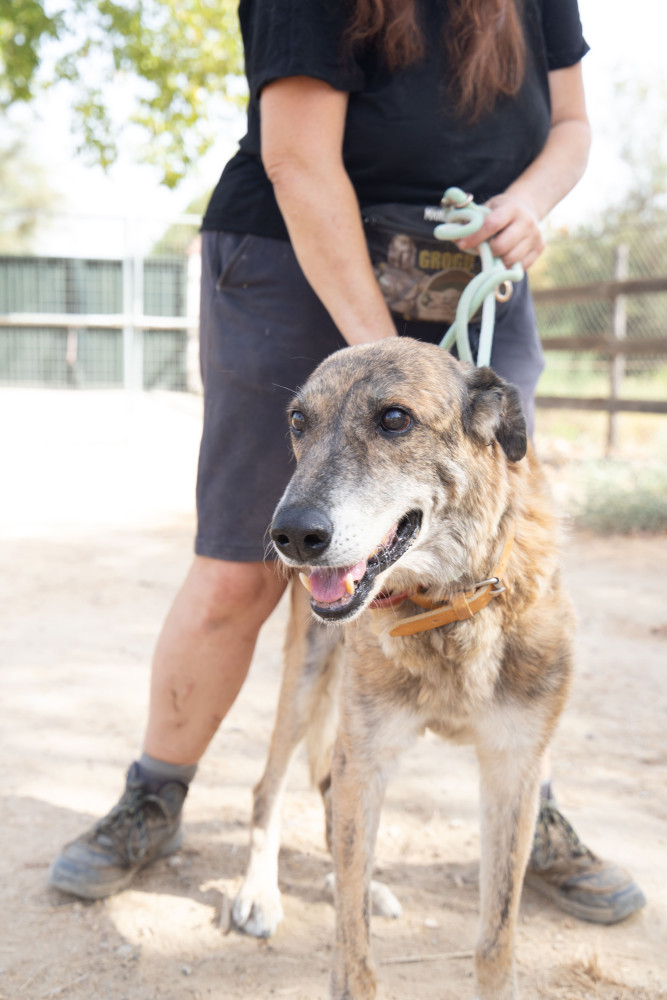Este ancianito fue encontrado cerca del refugio junto con dos compañeros que por desgracia no se dejaron coger. En cambio él vino a buscarme en cuanto abrí las puertas del coche, le cogí y para adentro. Llegó en un estado de deterioro por la edad muy fuerte, muy bajo de peso y con problemas de movilidad normales dada su edad, que está entre 12-14 años. Aunque no sabemos nada de su pasado, con su genio de señor mayor se ha ganado nuestro corazón a base de pedir mimos y seguirnos a todos lados, es un perro muy cariñoso y obediente. Está libre de enfermedades pero el deterioro físico por la edad hace que la vida en el refugio no sea la ideal para él. Nos encantaría encontrar alguien que le diera los últimos años de su vida en una casa calentita con una cama confortable, nada nos haría más felices.