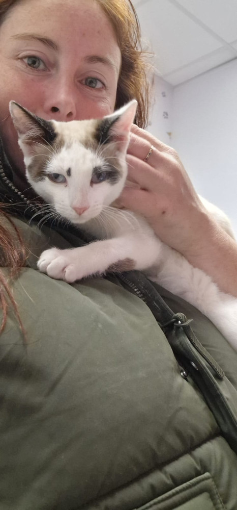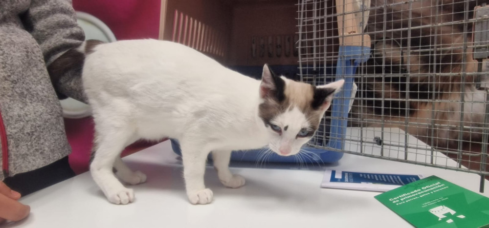 Este precioso bebé, hermanito de Circe, también con un nombre muy romano, Cneo Cornelio Escipión, es el más crecidito de los 4 del rescate de la urbanización. Le recogimos a él junto a su hermana, y al día siguiente a su mami junto a otra adulta y 2 bebés más. Estaban muertos de hambre, llenos de parásitos y con herpesvirus o similar que les hacía tener la respiración y los ojitos afectados. En cuanto se le ha desparasitado y dado buena comidita, se ha recuperado super bien. Es muy cariñoso y está listo para irse a una casita