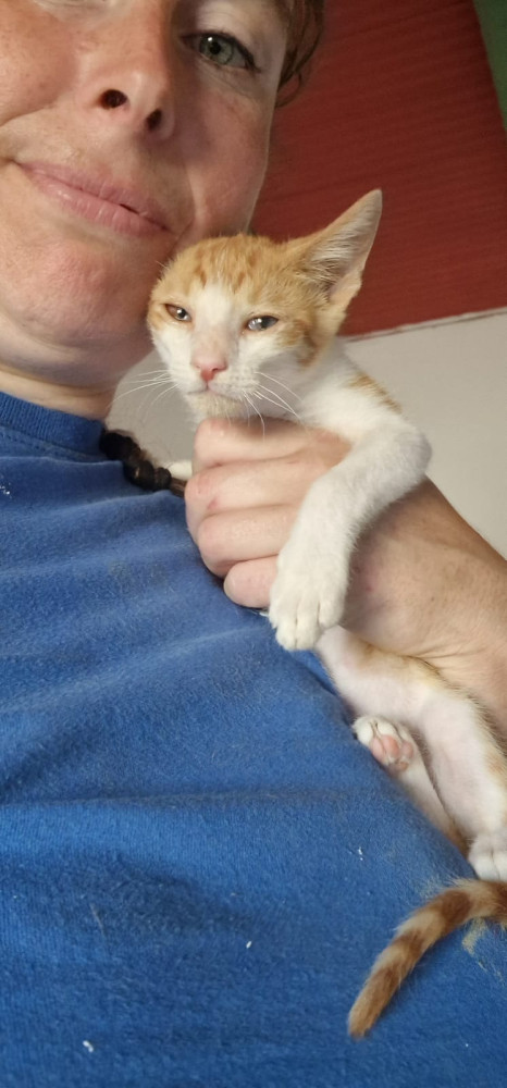 Craso, este precioso naranjito es otro de los bebés del rescate de la urbanización. Es un chico con carácter, lo de echarse las gotas en los ojos no le hace nada de gracia. Pero es cariñoso y juguetón como todo bebecito precioso.