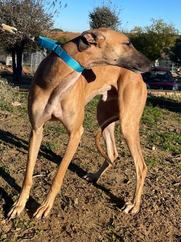 Woody llegó junto a Norman, Halyn y Vali del descarte de dos cazadores a los que no les sirvieron para cazar al probarles. Llegaron con un miedo inmenso, metidos en un remolque pegando golpes contra el camino, como si fueran piedras o maderos. Woody era más tímido cuando llegó pero ya se va abriendo, ladra, juega con los otros perros y nos hace monerías. Va permitiendo la manipulación sin asustarse tanto, sobre todo que le recoloquemos el abriguito ya no crea un drama. Va a ser una dulzura de perrito, tiene que recuperar , o mejor dicho, ganar la confianza en el ser humano. Día a día hacen mejoras así que pronto sabemos que va a ser un galguito encantado de estar con humanos de los buenos, de los que dan mimos sin buscar una utilidad, de los que te ponen un abrigo para que no tengas frío, de los que te llenan la barriguita de comida de calidad. Además es un auténtico bellezón
